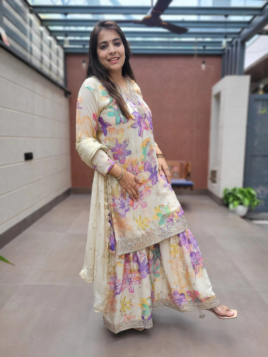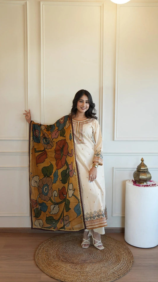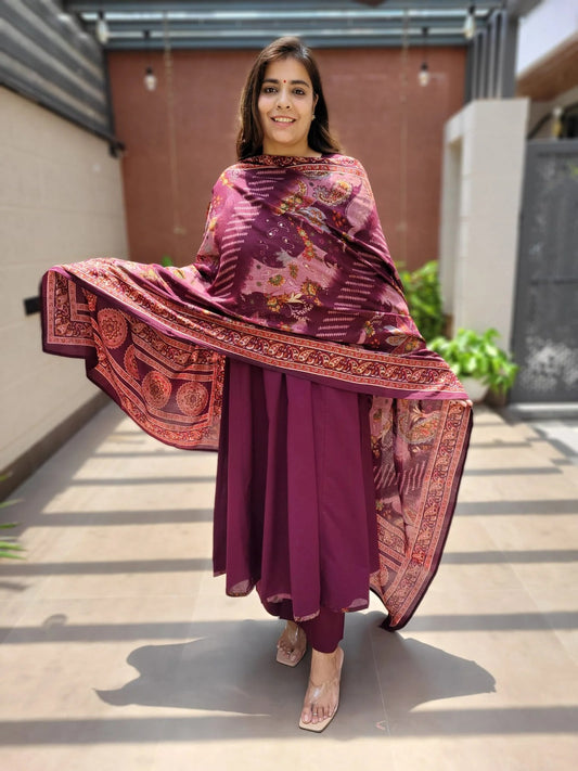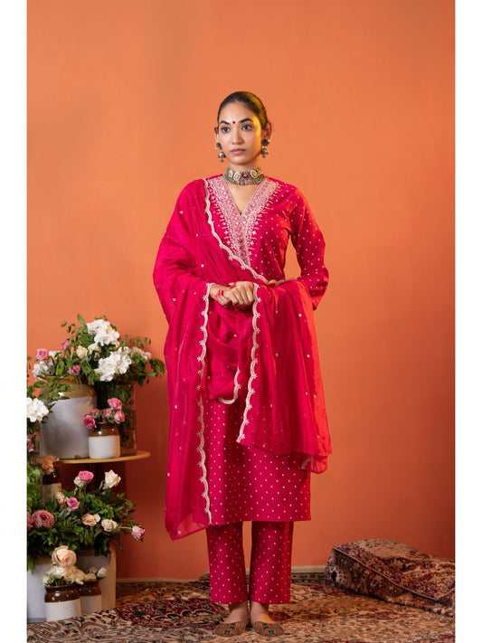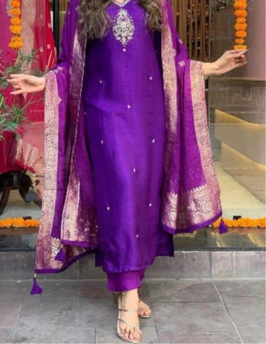 Russian Silk Embroidered Kurta Set with Banarasi Dupatta