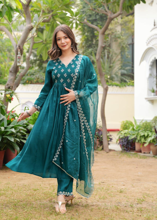 Dola Silk Designer Dupatta Set (Teal Blue)
