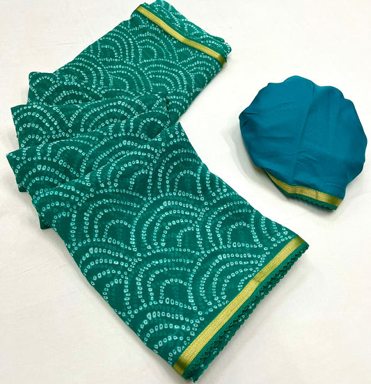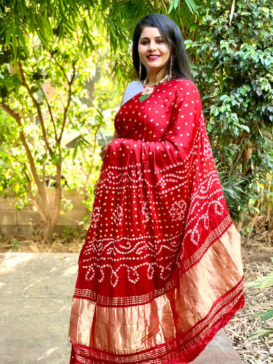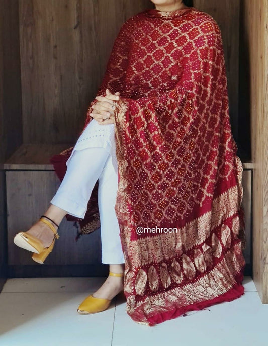 Bandhani is a type of tie-dye textile decorated by plucking the cloth with the fingernails into many tiny bindings that form a figurative design.