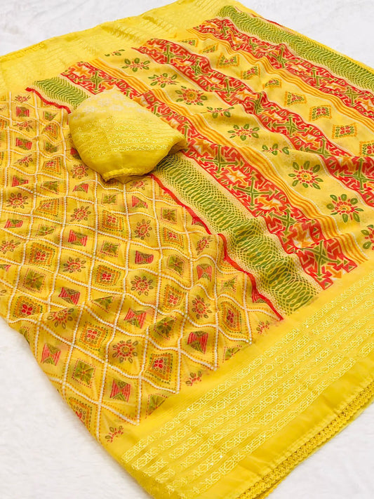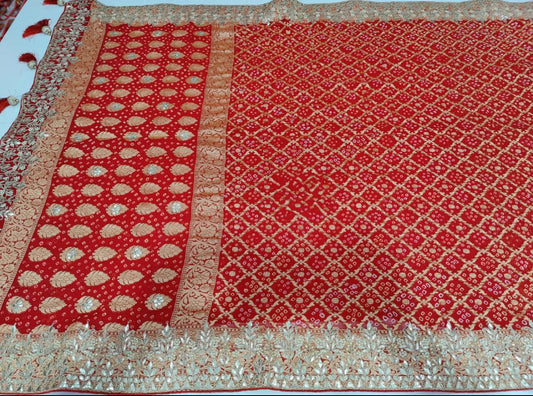 Pure Georgette Neemzari Zangla weave saree with heavy Gota Work