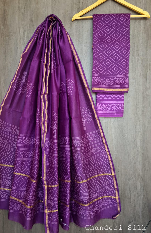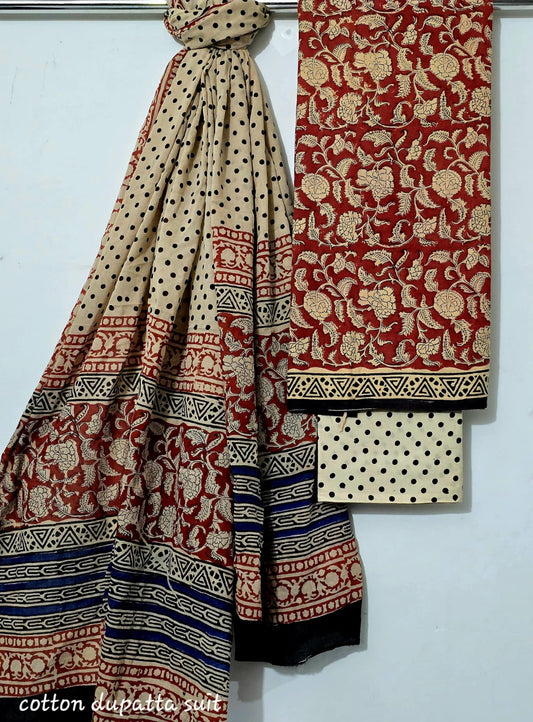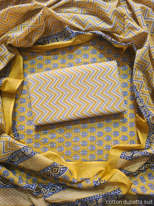 Pure Cotton Hand block printed Suit Pc with Dupatta