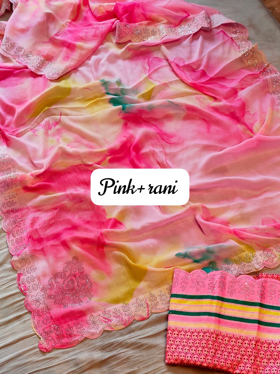 multi colour Digital Printed Munga Silk saree with Swaroski work